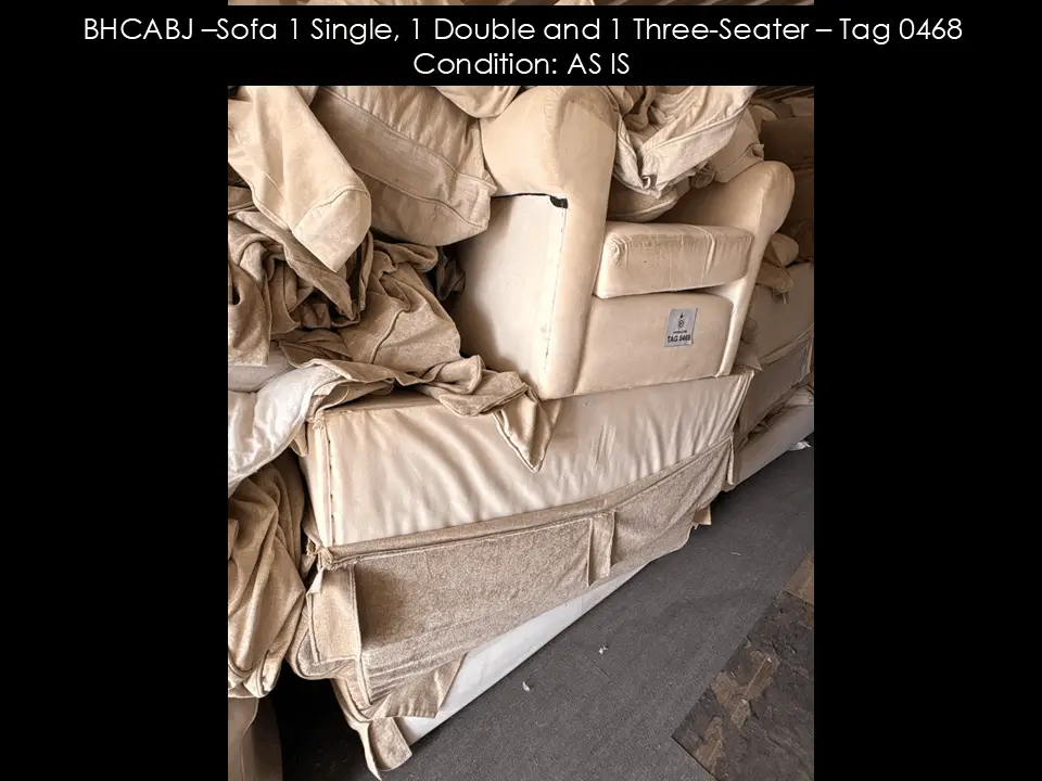 BHCABJ –Sofa 1 Single, 1 Double and 1 Three-Seater – Tag 0468 Condition: AS IS