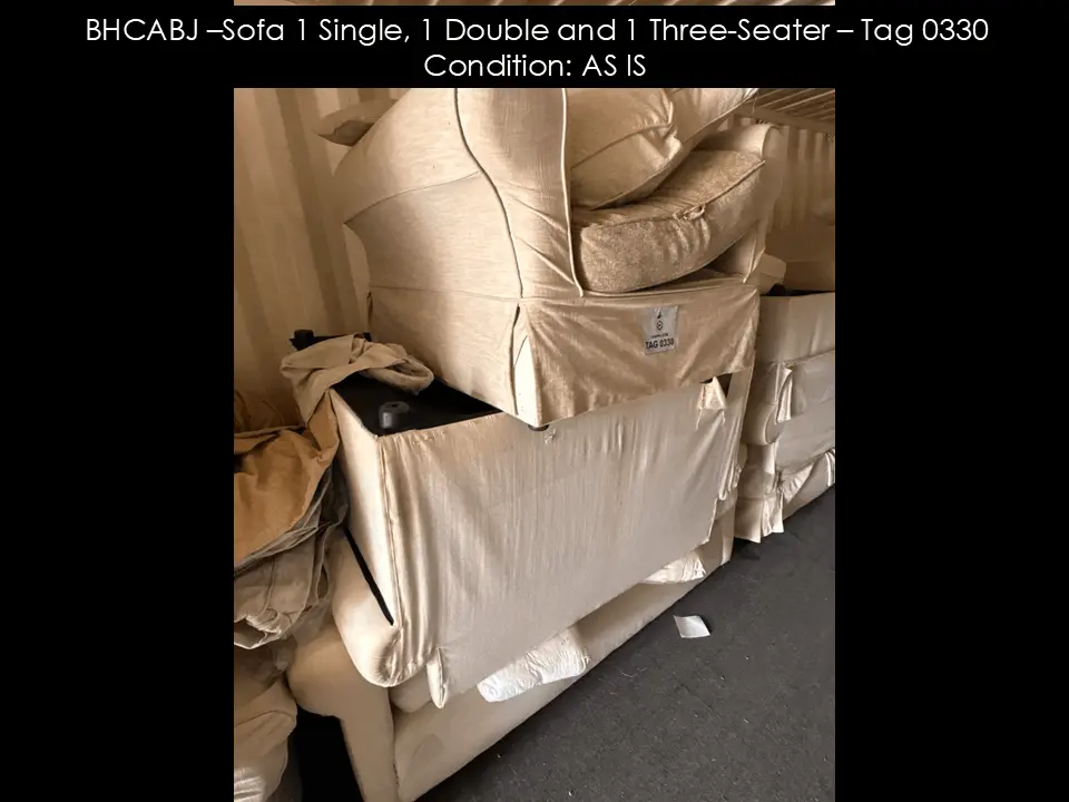 BHCABJ –Sofa 1 Single, 1 Double and 1 Three-Seater – Tag 0330 Condition: AS IS