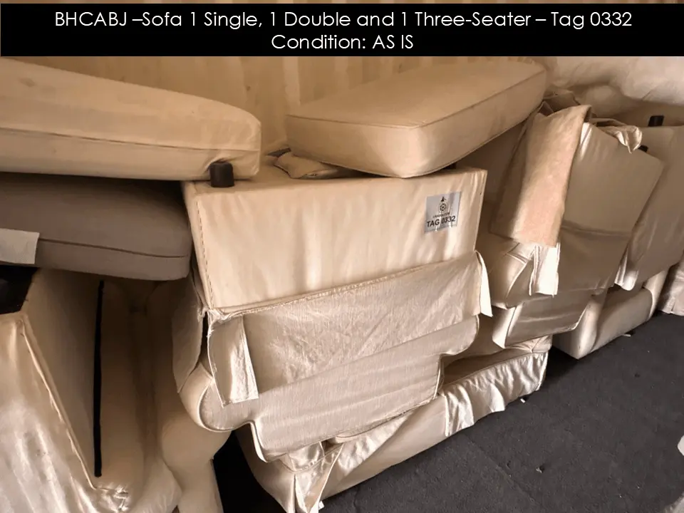 BHCABJ –Sofa 1 Single, 1 Double and 1 Three-Seater – Tag 0332 Condition: AS IS