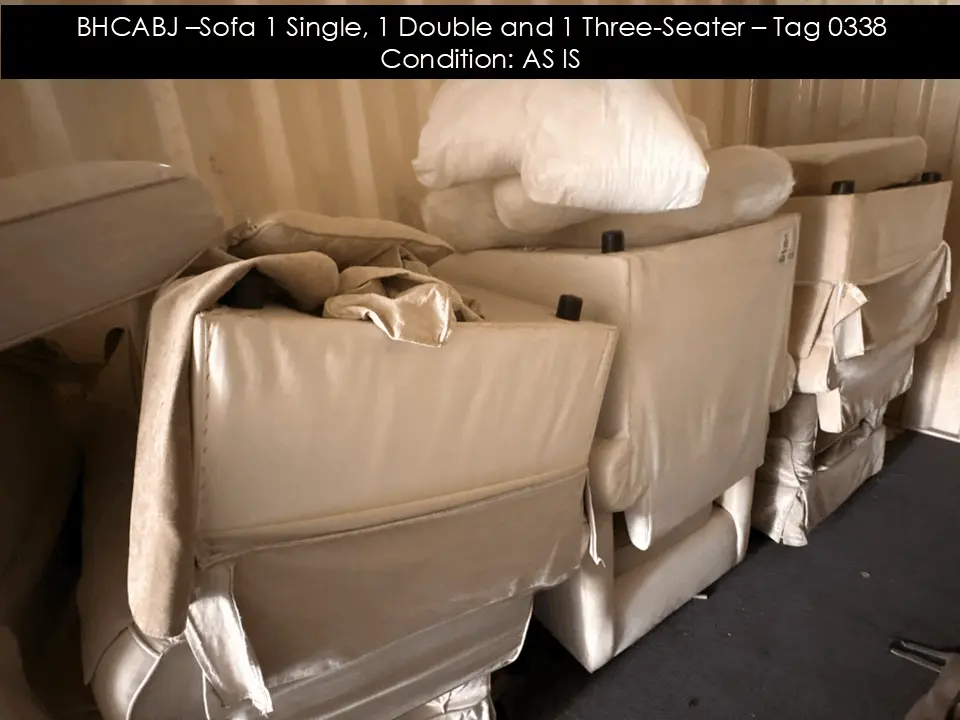 BHCABJ –Sofa 1 Single, 1 Double and 1 Three-Seater – Tag 0338 Condition: AS IS