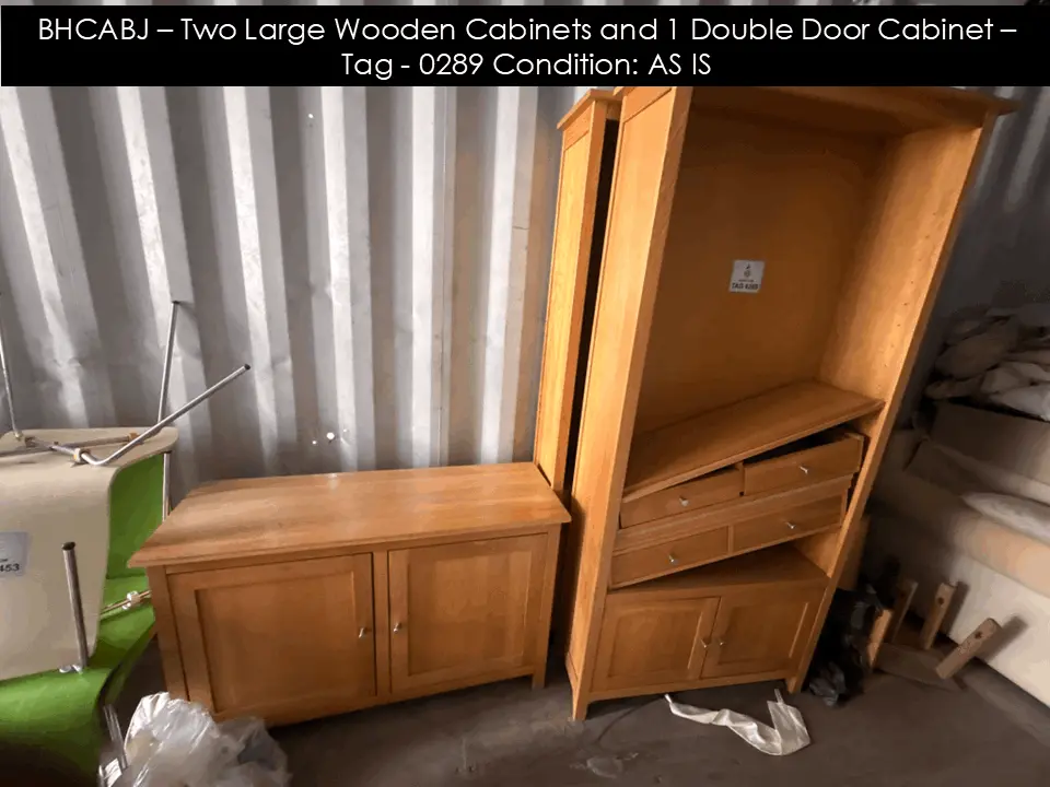 BHCABJ – Two Large Wooden Cabinets and 1 Double Door Cabinet – Tag - 0289 Condition: AS IS