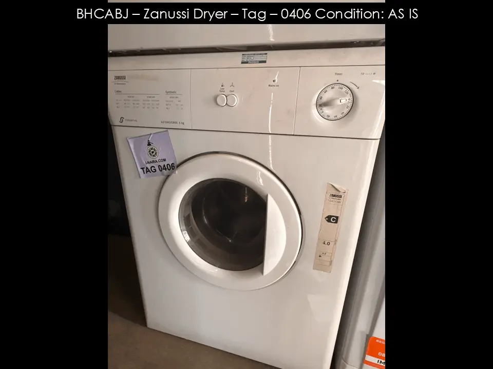 BHCABJ – Zanussi Dryer – Tag – 0406 Condition: AS IS